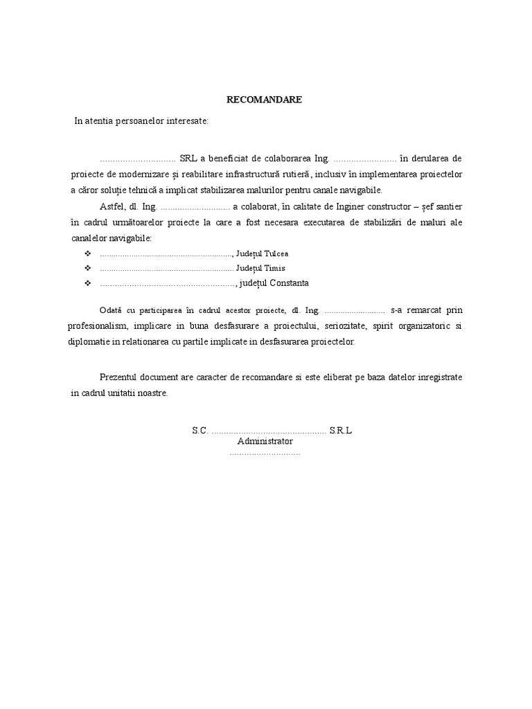 Model Scrisoare De Recomandare Colaborator Prestator Pdf