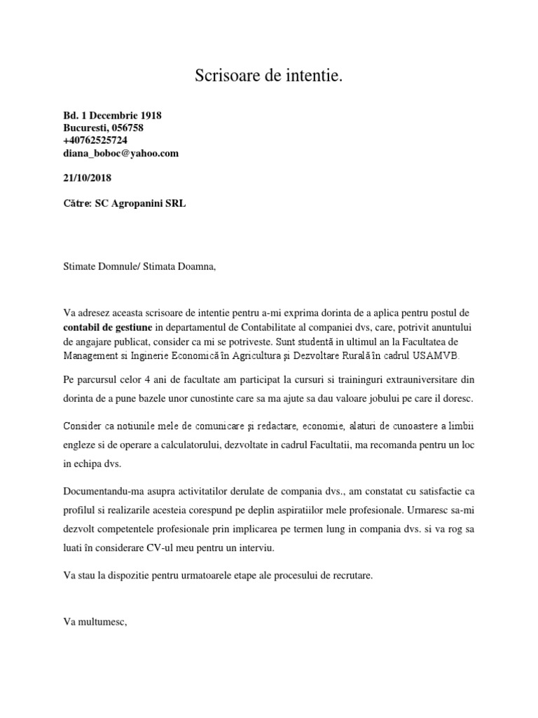 Scrisoare De Intentie Intreprindere Pdf
